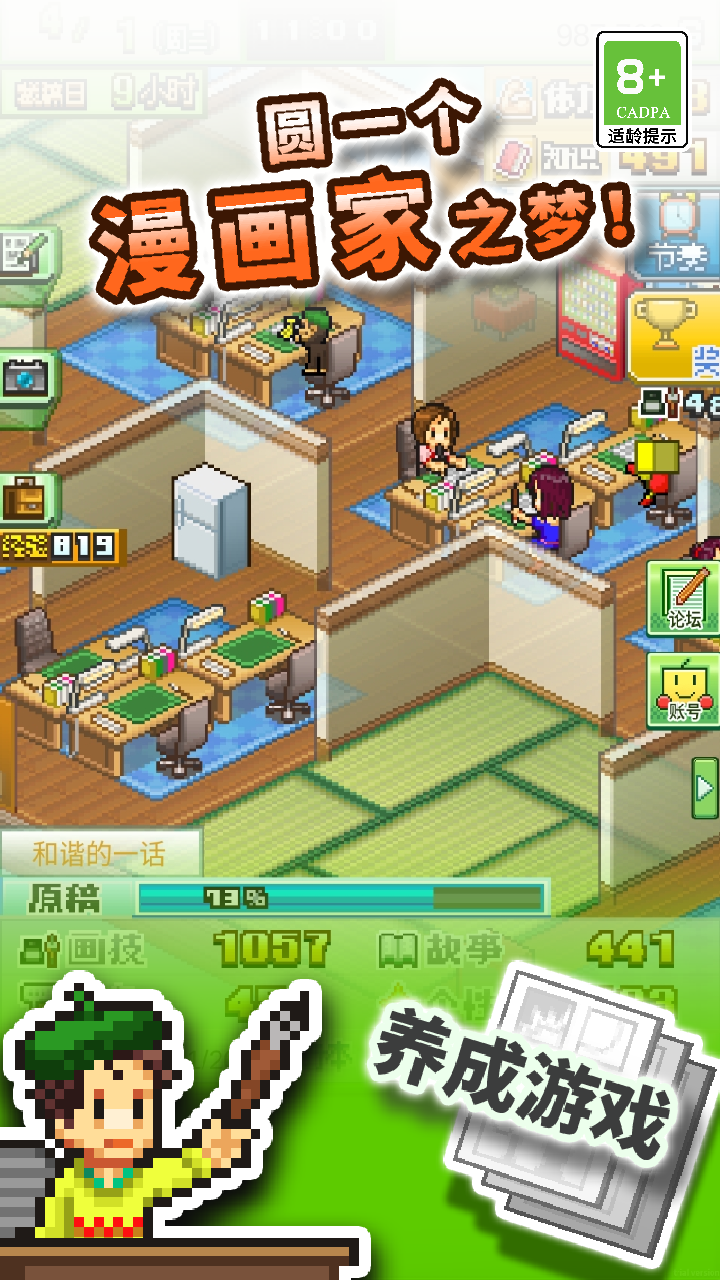 玩家可以逐渐积累人气和声誉 ,漫画成为顶流漫画家出道吧 !道场快来挑战自己的物语创作才能
